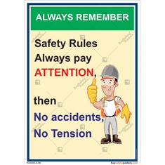 This Industrial safety slogans in Hindi poster promotes safety awareness and accident prevention. This poster mentions that safety regulations must be followed in order to prevent accidents and to avoid getting into trouble . Awareness regarding safety and accident prevention are important and must be shared well amongst the people . Successful mass awareness can be created by means of this Workplace safety slogans poster where it also supports to develop safety practices to achieve accident free status of the institution